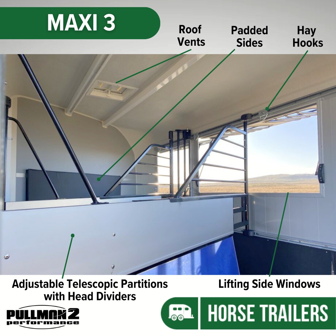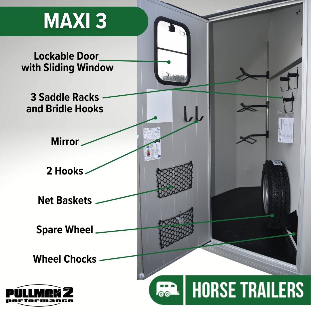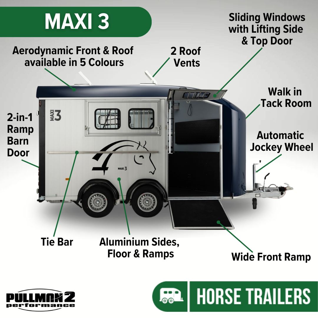 The Maxi 3 is a fully equipped horse trailer and is perfect for Western riders, Dressage or a Pony Club family, for example.