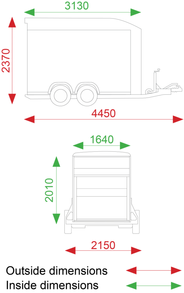 - Inside = 3200 x 1650 x 2000mm (LxWxH)