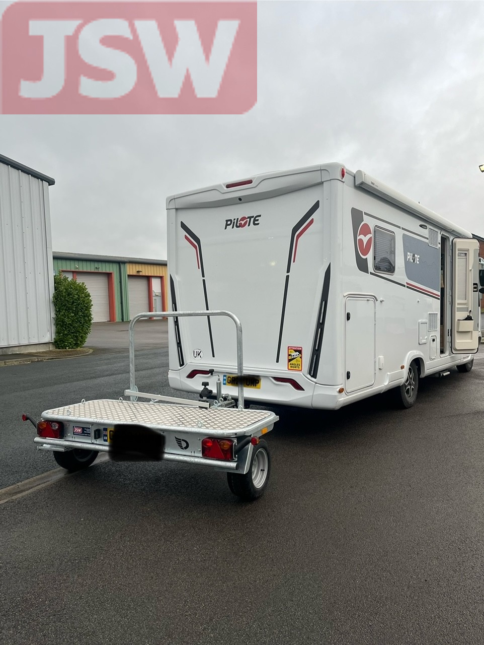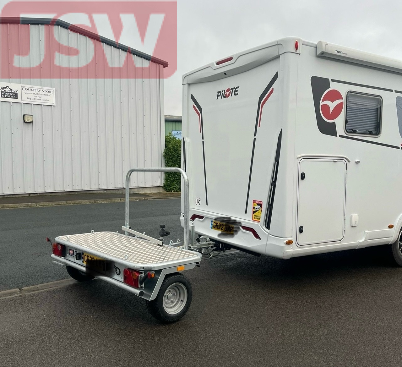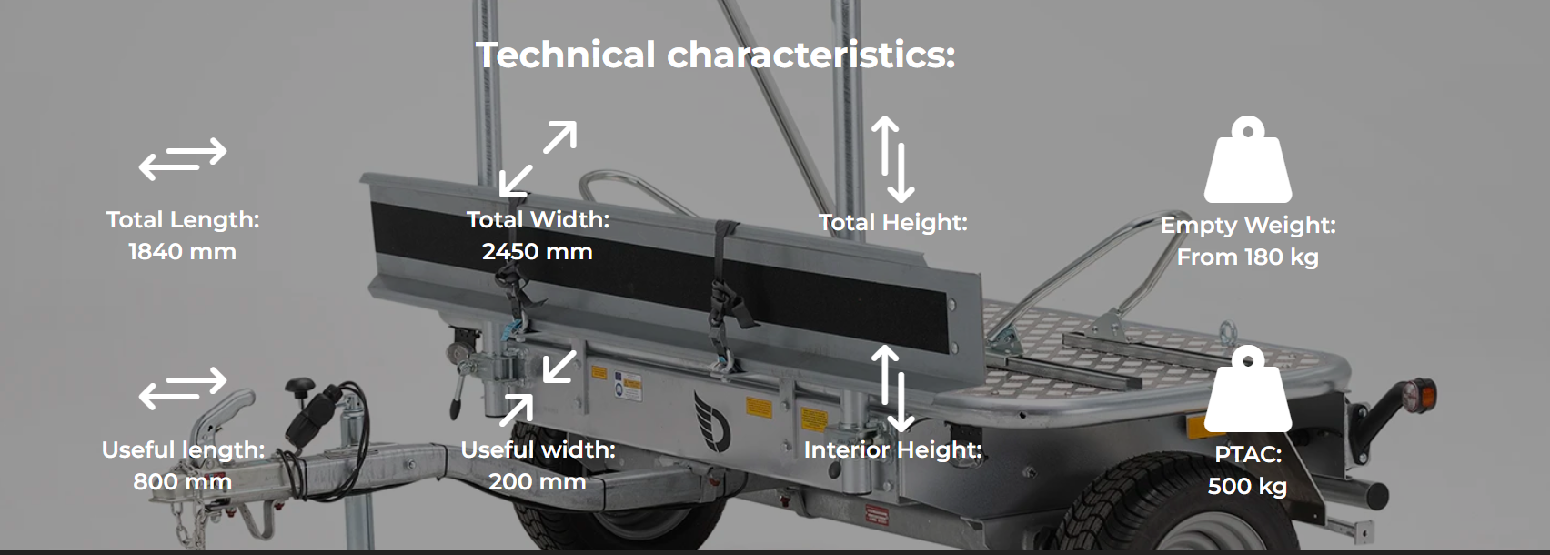 Why not discover the new Debon MOTO Compact Transverse Trailer which is specially designed for motorhome and motorcycle enthusiasts? This Debon MOTO Compact Transverse Trailer is ideal for those looking to optimize the length of their towbar while easily transporting a your electric bicycles and motorcycles. This trailer stands out for its compact and functional design.