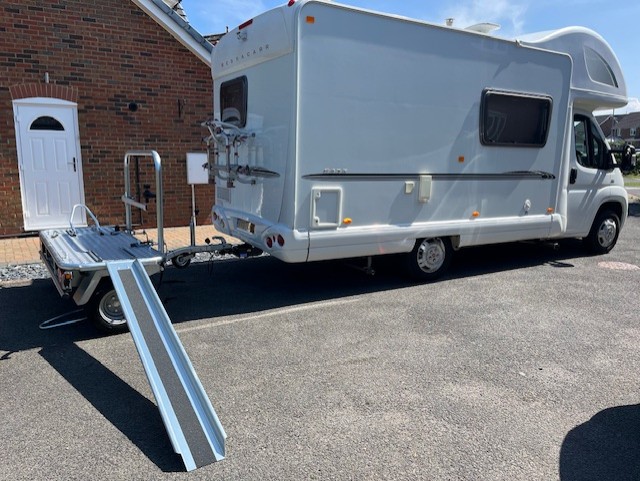Thanks to its transverse configuration, it limits the space taken up at the rear of the motorhome or van offering a practical solution for travellers wishing to transport their motorcycle, electric bikes or other with ease.