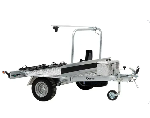 Explore the innovative MOTO Compact Transverse Motorcycle Trailer from Debon Trailers, specifically crafted for motorhome aficionados. The MOTO Compact Transverse Trailer is perfect for individuals aiming to optimise the length of their tow hitch while conveniently transporting a motorcycle. This trailer is distinguished by its compact and practical design.