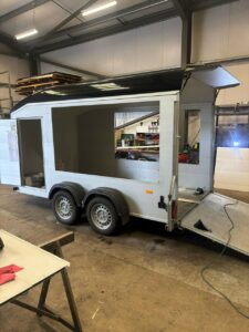 Yes, we have been at it again and this time for leisure company Oar Sport. Given our proficiency in fabrication, they sought our services to produce two custom lift-up door flaps for their Debon C700 Van Trailer. A year following their acquisition of the C700 from us, they returned with specification drawings for these lift-up doors, tailored to meet their specified dimensions.